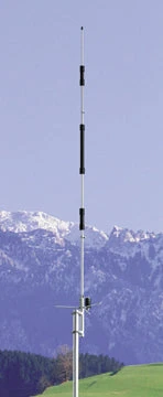 This model gives very high gain with a low angle of radiation and it is only 7.7 feet (2.35 m) high. The AR270B is computer optimized with two 5/8 wavelength collinear elements on 2 meters and four 5/8 wavelength elements on 70 cm. It is broadbanded for minimum SWR on both bands. It is easy to assemble with three rugged aluminum tubing sections, a durable mast mount and factory sealed coils for best performance.