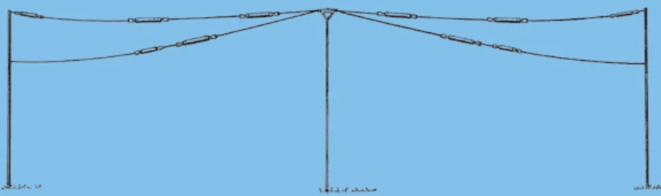 94 feet max length. Designed for horizontal or inverted “V” rated at legal power. Individually pretuned matched traps for each band, 50 Ohm feed, coaxial cable not included.