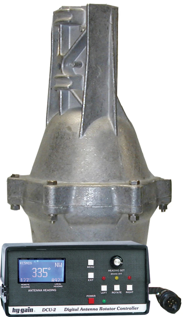 HAM and T2X series of rotators have been improved adding a digital pulse counter to the rotators and digital controllers. Older rotators used a specially designed expensive potentiometer to determine antenna heading. Over time the pot wiper contacts get intermittent and noisy. This new design uses a special high temperature rare earth magnet and a reliable reed switch to count the rotations of one of the gears in the drive assembly. DCU-2 and DCU-3 have circuitry built-in to count the pulses and accurately determine the heading of the rotator to +/- 1 degree with repeatable accuracy. With the new pulse mode the noise and intermittent pot problems are no longer an issue. Older rotators can be retrofitted with the new gear and pulse board. Older DCU2 and DCU3 controllers will need a modification to the wiring and a firmware update that can be done in the field. The pulse mode is not compatible with the DCU-1 or the older controllers that have analog meters in them. Call Hy-Gain for more details! 662-323-9538.