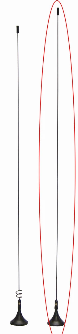 Built rugged for mobile use. Each has a tiny but powerful 1 ⅛” diameter rare earth magnet and a thin 20 inch stainless steel whip.