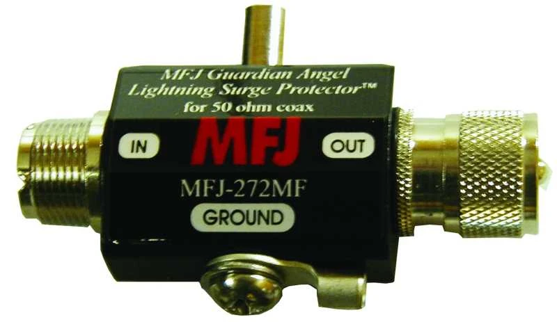 MFJs Guardian Angel Lightning Surge Protector has an Ultra-fast gas discharge tube that safely shunts up to 5000 amps of peak impulse current harmlessly to an independent ground. SWR less than 1.1:1.