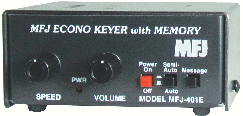 The same as MFJ-407E except weight and tone controls are adjusted internally and doesn’t have a tune switch. Use 9 volt battery or 110 VAC with MFJ-1312D, $15.95. 4 x 1 3/4 x 3 1/4 inches.