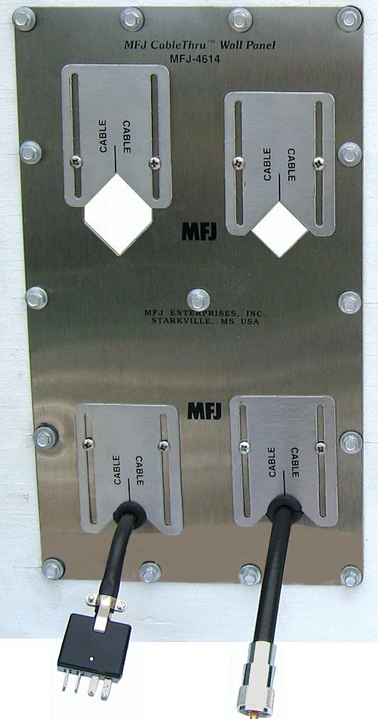 MFJs exclusive weather-sealed AdaptiveCable™ Wall Plates let you bring nearly any cable; rotator, antenna switch, coax, etc.; through walls without removing connectors.