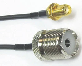 Female to SO-239 adapter cable for Wouxun and Baofeng handhelds.