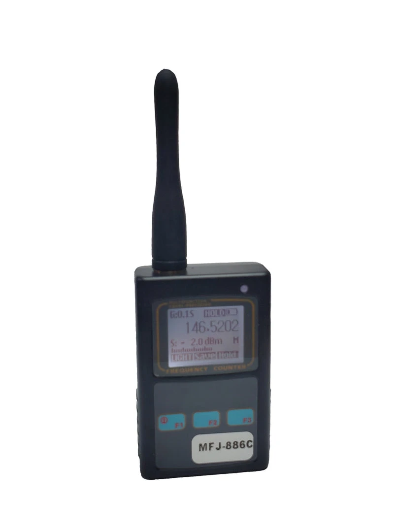 MFJ-886C covers 300 Hz to 2.8 GHz with 1 Hz resolution and four selectable gate speeds. Super handheld unit is a tiny 2 3/8Wx3 1/4Hx1D inches.