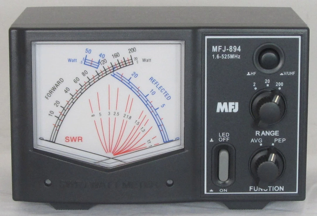 These new MFJ Giant SWR / Watt meter series have large 3 ⅝” Cross-Needle SWR / Watt-meters that have a three-color scale for improved readability. These wattmeters simultaneously display forward/reflected power and SWR all at a glance! They each have individual meter scales for each power range that increase reading accuracy. A True Active peak-reading circuit is included for SSB operation (MFJ-891 only). LED backlighting provides smooth and even illumination for easy night viewing. Low bias Schottky diode detectors increase linearity from low power to high power readings. A true directional coupler for increased accuracy gives solid readings over the entire frequency range, HF to UHF. DC grounded antenna connectors prevent electrostatic build up. SWR less than 1.2:1. Meter accuracy is +/- 10% of full scale or better. Has lighted meter on/off switch. These wattmeters are extra sturdy with large rubber feet and a rugged metal and a designer-styled plastic injection molded front panel. Handsome black speckled finish and gray molded front panel aesthetically complements today’s modern transceivers. Quality SO-239 connectors. 7 ¼”W x 4 ½”H x 4 ½”D.