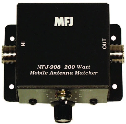 Matches HF mobile antennas (ham sticks, screwdrivers, etc.) 10-80 Meters by adding L (inductance) from the feedpoint to ground to form L-network with antenna. 11 values of switchable inductance. .2 uH – 12 uH. Handles 200 Watts. SO-239 connectors. 4W x 3¾H x 1¾D inches.