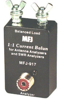 1:1 Current balun lets you use SWR and Antenna Analyzers on balanced line antennas and other loads. 1.8-30 MHz.