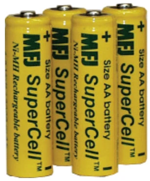 The MFJ-92AA01 is a high capacity 3000 mAh rechargable Ni-MH AA battery. MFJs SuperCell batteries have twice the power of standard Ni-Cds at about the same price! MFJ batteries have no detrimental memory effect that are the trademark of Ni-Cd batteries so you can use them to their full potential.