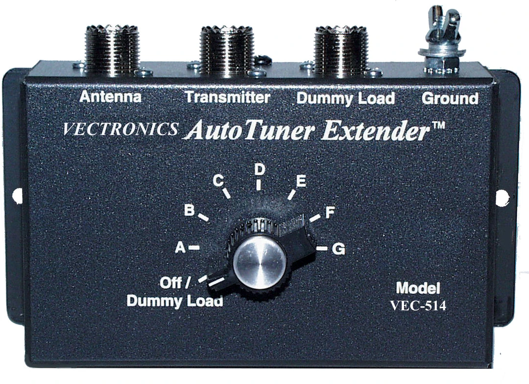 An OFF position grounds your antenna to bleed off static and protect your receiver. OFF also connects your transceiver to an external dummy load for safety. The VEC-514 also has a bypass position.