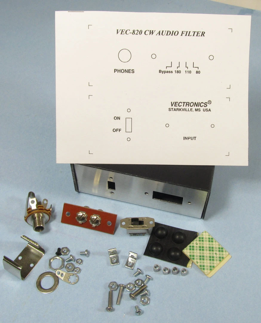 Cabinet for the CW Audio Filter Kit VEC-820K. Knobs, hardware and rubber feet. brushed aluminum looking front decal.